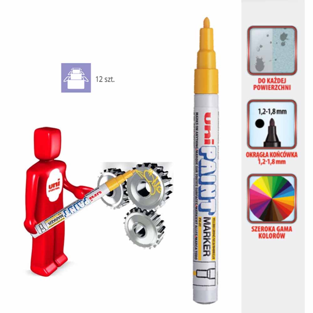 Marker olejowy Pentel MMP20, w kolorze żółtym, jest idealnym narzędziem do oznaczania wszelkich powierzchni. Bez względu na to, czy pracujesz na metalu, plastiku, szkle, drewnie czy innych materiałach, ten marker zapewnia wyraźne i trwałe oznaczenia.