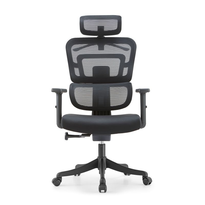 Krzesło obrotowe SKIATOS doskonale sprawdzi się w przestrzeni biurowej. Oparcie charakteryzuje lekka i nowoczesna forma plastikowa imitująca siatkę z możliwością regulacji wysokości. krzesło obrotowe mechanizm synchroniczny z wbudowaną płytą przesuwu siedziska i regulacją kąta nachylenia siedziska zagłówek PU podstawa aluminiowa polerowana Ø 700mm zsynchronizowana regulacja kąta pochylenia oparcia i siedziska za pomocą jednej dźwigni synchroniczne odchylenie siedziska i oparcia za pomocą jednej dźwigni kąt pochylenia oparcia 23°, siedziska 8,5° możliwość blokady oparcia i siedziska w 5 pozycjach za mocą za pomocą dźwigni regulacja wysokości siedziska za pomocą dźwigni regulacja głębokości siedziska (wbudowana płyta przesuwu siedziska) regulacja kata ujemnego siedziska w zakresie od 0° do -5°, możliwość swobodnego kołysania regulacja natężenia za pomocą korby lub pokrętła system anti - shock – ochrona pleców przed uderzeniem oparcia po zwolnieniu blokady mechanizm przeznaczony do użytkowania w pozycji zablokowane i odblokowanej kółka twarde – 65mm; do powierzchni miękkich podłokietniki regulowane góra-dół; konstrukcja czarna, nylonowa; czarne, miękkie nakładki poliuretanowe maksymalny udźwig: 150 kg zagłówek PU 2 lata gwarancji kolor: czarny Spełnia nowe regulacje rozporządzenia MRiPS obowiązujące od 17 maja 2024 r. w sprawie BHP na stanowiskach wyposażonych w monitory ekranowe.