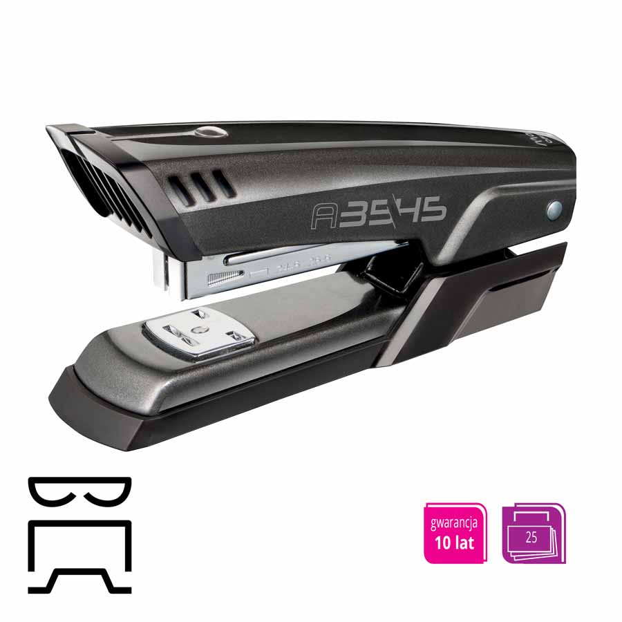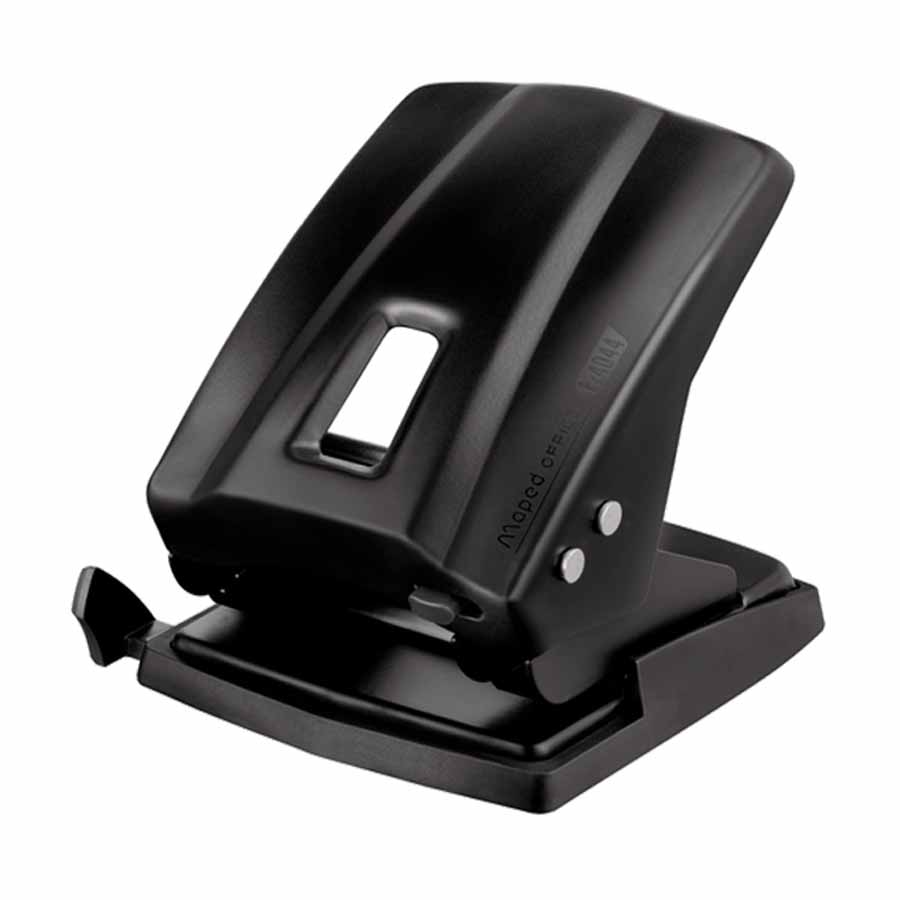 dziurkacz do 20 kartek mechanizm i podstawa metalowe, ergonomiczne plastikowe ramię (ABS) bolce dziurkujące ze stali nierdzewnej głębokość wsuwania kartek: 12mm odstęp pomiędzy dziurkami: 80mm średnica dziurki: 5,5mm ogranicznik formatu: Q1, US-Quart, 888, Folio, A4, A3-E, A5, A6, B5, B6, Ex antypoślizgowa plastikowa nakładka na podstawę podwójny wskaźnik środka strony posiada blokadę ramienia w postaci wyjmowanego plastikowego ogranicznika na dziurkaczu nadrukowana nazwa marki pakowany po 1szt. w kartonowe pudełko gwarancja 10 lat kolor: czarny
