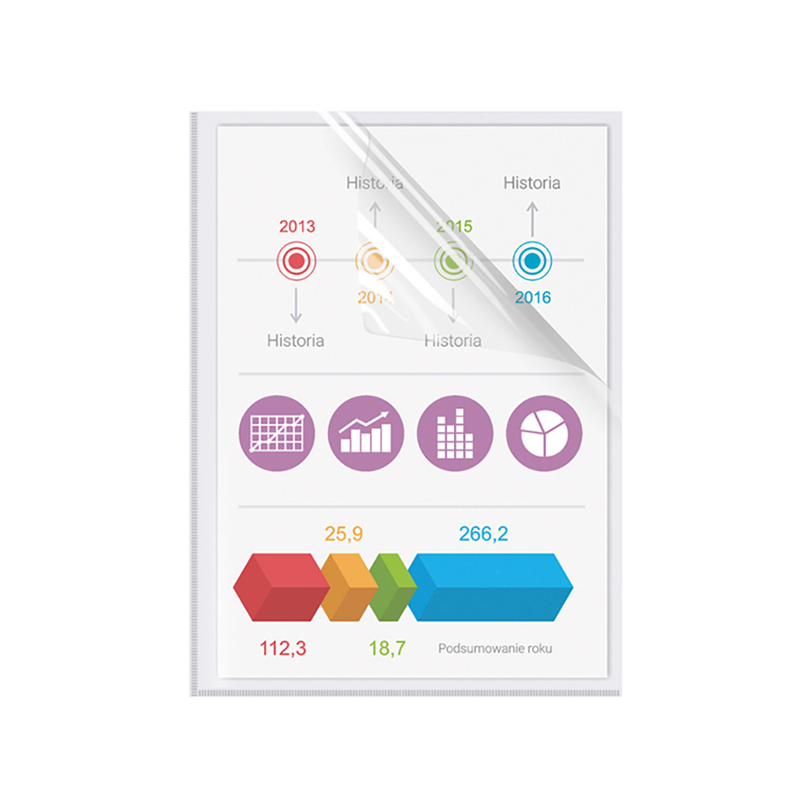 Ofertówka Biurfol została zgrzana w literę “L”, co pozwala na łatwe wkładanie i wyjmowanie dokumentów. Dodatkowe wycięcie na palec oraz zaokrąglony prawy górny róg zapewniają wygodę użytkowania i zwiększają komfort codziennego korzystania z produkt. Idealnie nadaje się do przechowywania dokumentów w formacie A4.