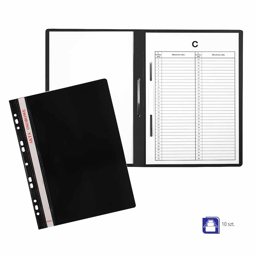 Skoroszyt A4 do akt osobowych Biurfol to połączenie funkcjonalności z profesjonalnym wyglądem. Wykonany z trwałej folii PVC, posiada twardą, przezroczystą przednią okładkę oraz solidny, kolorowy tył, co zapewnia nie tylko długowieczność, ale także estetyczny wygląd, który idealnie pasuje do nowoczesnych biur.