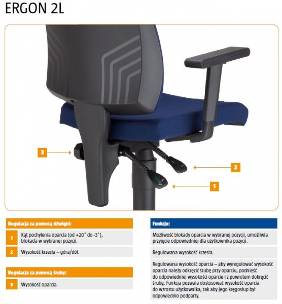 - mechanizm Ergon2L zapewnia blokadę oparcia w dowolnej pozycji