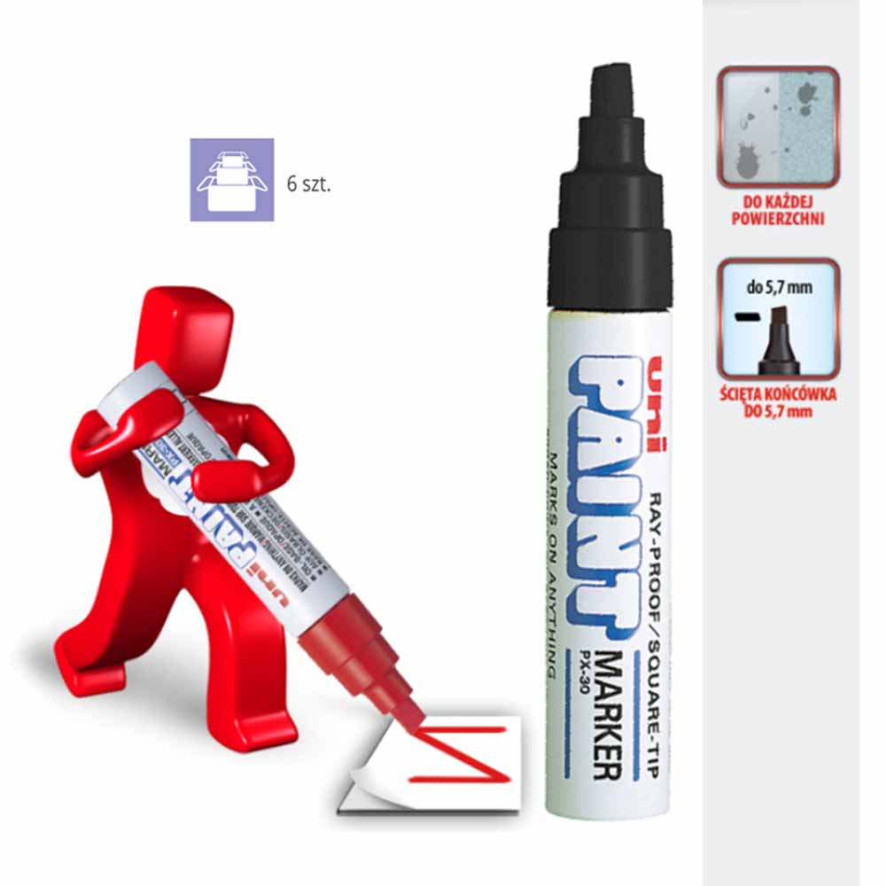 Tusz markera UNI PX-20 jest wodoodporny i nie traci koloru pod wpływem światła ani ekstremalnych warunków atmosferycznych. To gwarantuje, że Twoje oznaczenia pozostaną wyraźne i czytelne, niezależnie od miejsca i warunków, w jakich pracujesz.