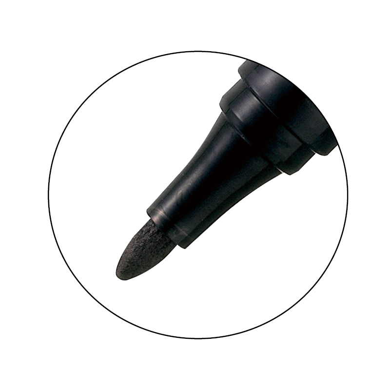 Marker Pentel N850 jest wyposażony w okrągłą końcówkę z włókna akrylowego, która zapewnia precyzyjne i równomierne pisanie. Grubość linii pisania wynosi 1,5 mm, co pozwala na dokładne i czytelne oznaczenia.